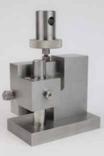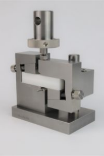 在安装试样时,用手指抬起从试样下端缺口下方的夹具中伸出的小直径杆,以使试样从左到右居中。试样被推到夹具的平坦背面,使其前后定位。楔子不是用来夹紧的;它们可以用手指旋钮调节,以适应宽度略有不同的试样。可以提供不同厚度的楔子,以适应这个小范围的厚度变化之外的试样。